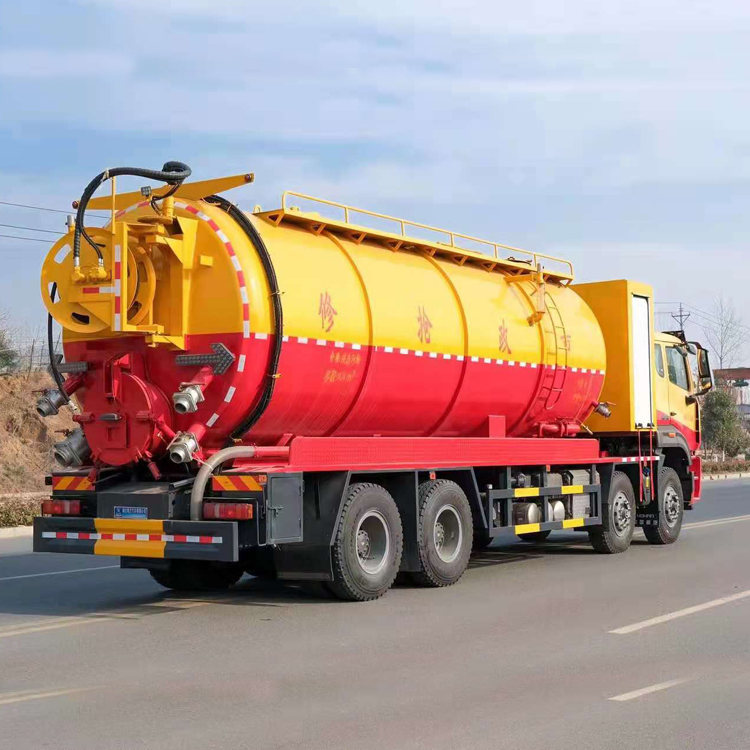 該車專用裝置主要為污水罐和清水罐,用于下水道吸污及疏通。隨底盤選裝駕駛室;罐體尺寸(直段長×直徑)(mm):7100×2350,其中罐體前端為清水罐(直段長3150mm);后端為污水罐(直段長3950mm)。兩罐獨立,且不能同時滿載。清洗功能時用清水罐,吸污功能時用污水罐。污水罐有效容積14.57立方米,介質:液態(tài)污物,密度:800千克/立方米;清水罐有效容積11.66立方米,介質:,密度:1000千克/立方米。采用軸距(mm):1800+4600+1350,1800+4575+1400;/后防護材料均為:Q235碳鋼,連接方式均為:螺栓連接,后部防護截面尺寸(mm):200×60,后部防護離地高度(mm):480;ABS系統(tǒng)型號為446 004 6300,生產企業(yè)為威伯科汽車控制系統(tǒng)(中國)有限公司。選裝EBS,EBS系統(tǒng)控制器生產企業(yè):威伯科汽車控制系統(tǒng)(中國)有限公司,型號:EBS3。卸料方式為后卸式;選裝罐體頂部護欄樣式,選裝側面清洗管,選裝后罐口液壓開啟樣式,選裝后部閥門,選裝后部清洗管卷盤樣式 清水罐和污水罐為兩個獨立罐體,清洗功能時用前部清水罐吸污功能時用后部污水罐,兩種功能不同時使用.可選裝綠化水炮 前沖 后灑 側噴.