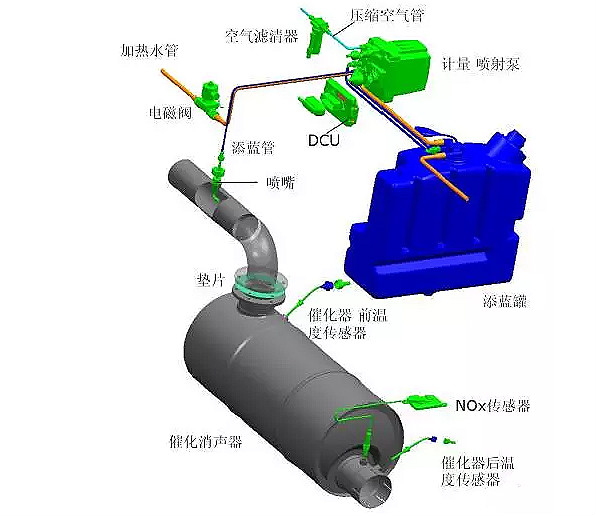 用戶國5發(fā)動機(jī)采用SCR選擇性催化還原技術(shù),可滿足國5的排放法規(guī)。柴油機(jī)所產(chǎn)生的微粒(PM)和氮氧化物(NOx)是排放中兩種最主要的污染物。從目前降低汽車尾氣排放的技術(shù)途徑來看,要達(dá)到國4、國5排放標(biāo)準(zhǔn),一般不再從發(fā)動機(jī)本身的結(jié)構(gòu)方面采取措施,通常是采取排氣后處理的方式來降低污染物的排放量,而尿素-SCR 選擇性催化還原法是最具現(xiàn)實意義的方法。