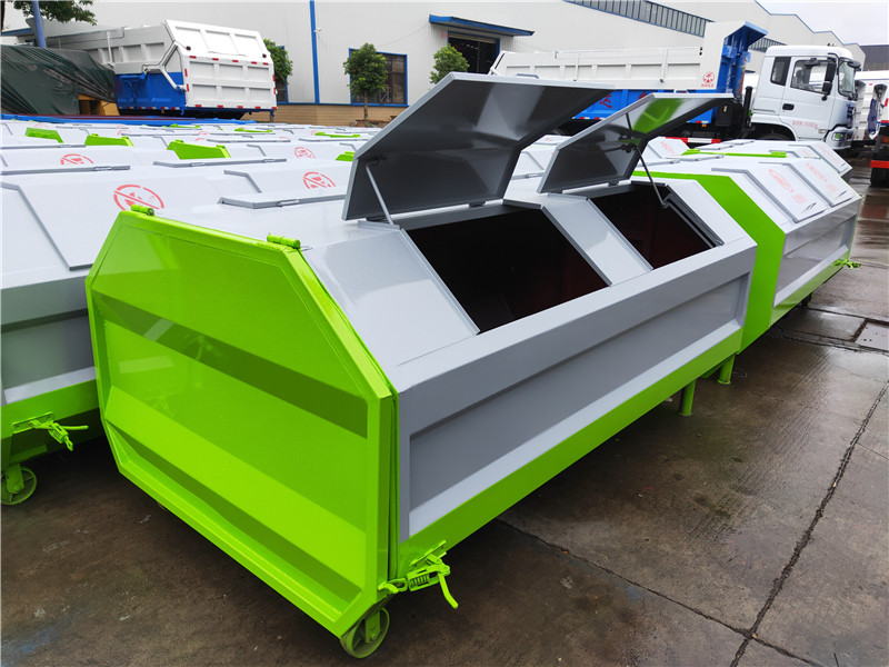勾臂垃圾車配套移動(dòng)垃圾箱外形以上梯形下長(zhǎng)方形、上弧形下長(zhǎng)方形、上弧形下弧形、長(zhǎng)方形為主,箱體兩邊各帶一對(duì)或二對(duì)垃圾投入口或頂部開口,帶蓋式箱體能夠避免風(fēng)將輕質(zhì)垃圾(塑料袋,廢紙等)吹散和防止雨水進(jìn)入箱內(nèi);箱體底部帶一對(duì)鐵輪方便吊上卸下時(shí)垃圾箱的移動(dòng),箱體后部可開啟【帶鎖緊機(jī)構(gòu),配備密封條】。勾臂垃圾箱外觀形狀、大小容積可根據(jù)用戶需求定制加工。