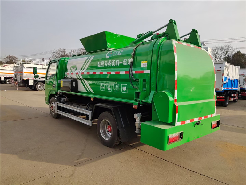 方罐式餐廚垃圾車(chē):弧形廂體,箱體內(nèi)可實(shí)現(xiàn)固液分離,推鏟卸料,后蓋液壓開(kāi)啟/鎖緊(帶耐磨橡膠密封條密封-后門(mén)關(guān)閉后滴水不漏),后門(mén)液壓鎖緊防誤操作功能,掛桶式提升機(jī),可配合120升、240升標(biāo)準(zhǔn)垃圾桶使用,清洗裝置(帶水箱、液壓馬達(dá)帶動(dòng)高壓泵)。