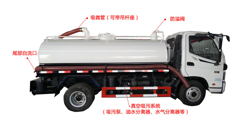 吸糞車專用部分由取力器、傳動軸、真空吸污泵、油水分離器、水氣分離器、防溢閥、壓力罐體、液壓部分,管網(wǎng)系統(tǒng)、吸污導管、自流閥、真空壓力表、視糞窗、洗手裝置等組成。罐體采用Q235碳鋼板制作,罐體封頭一次壓鑄成型,吸污導管可自吸自排,隨車配置大功率真空吸污泵。