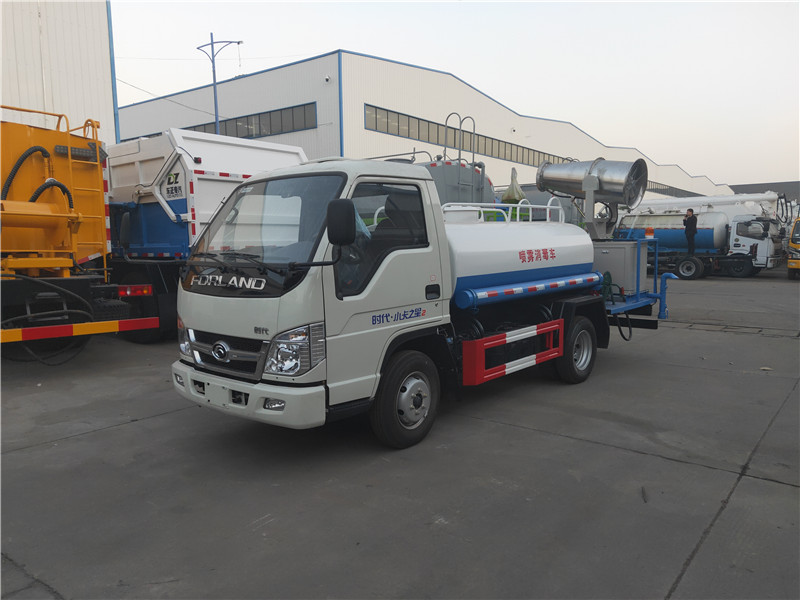 灑水車工作主要由發(fā)動機帶動變速箱,變速箱上安裝的取力器帶動灑水車水泵產(chǎn)生動力,將罐體內(nèi)部的水通過管路噴灑出去,水泵可自吸自排?筛鶕(jù)用戶需求選配抑塵霧炮。