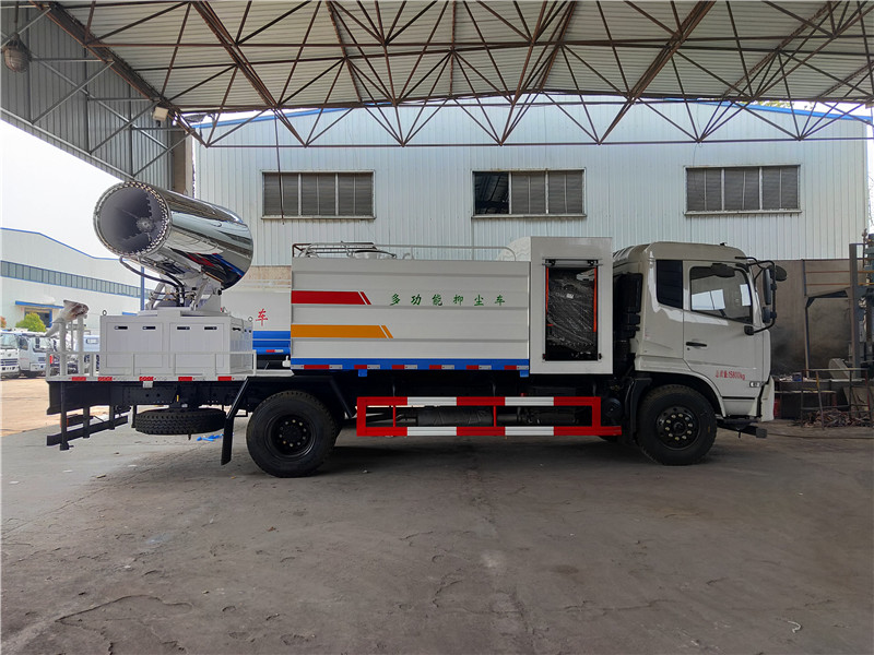 灑水車工作主要由發(fā)動機帶動變速箱,變速箱上安裝的取力器帶動灑水車水泵產(chǎn)生動力,將罐體內(nèi)部的水通過管路噴灑出去,水泵可自吸自排?筛鶕(jù)用戶需求選配抑塵霧炮。